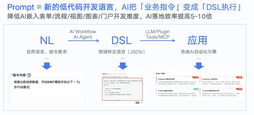 与此同时,越来越多的企业开始关注并愿意投入预算引入融合AI能力的低代码平台。领先厂商也正将AI功能深度嵌入产品矩阵,如支持通过自然语言指令生成脚本代码、推荐组件等,进一步提升低代码平台的使用效率和研发效能,降低人为配置负担,构建“AI+低代码”双驱动的新开发生态。