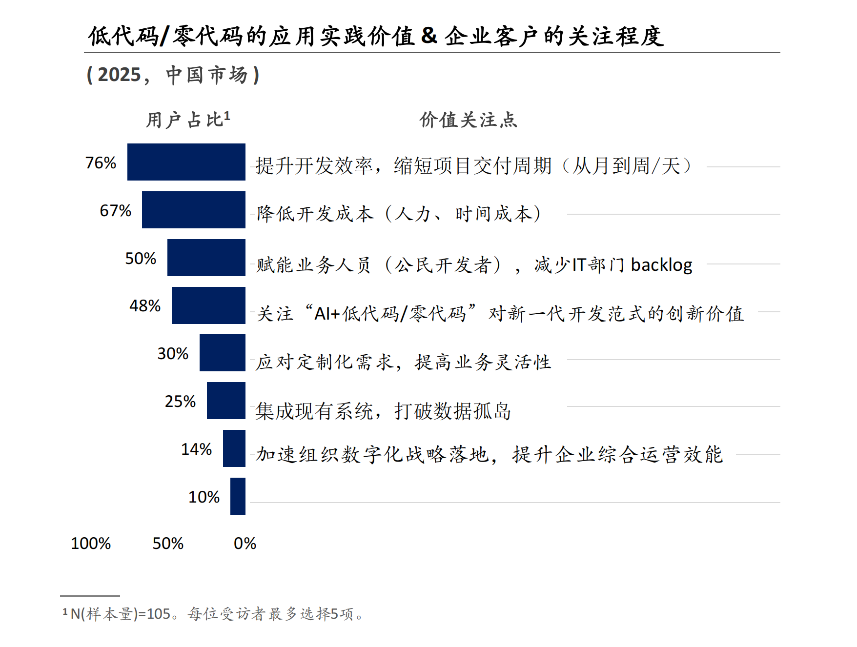 LowCode低码时代认为,低代码/零代码技术在企业的数字化实践中的渗透率正在稳步提升,低代码平台正从边缘辅助工具,演进为企业核心开发平台的一部分。企业的关注点也从初期的“提升效率、降低成本”,延伸至“AI融合创新与业务深度赋能”的长期价值。