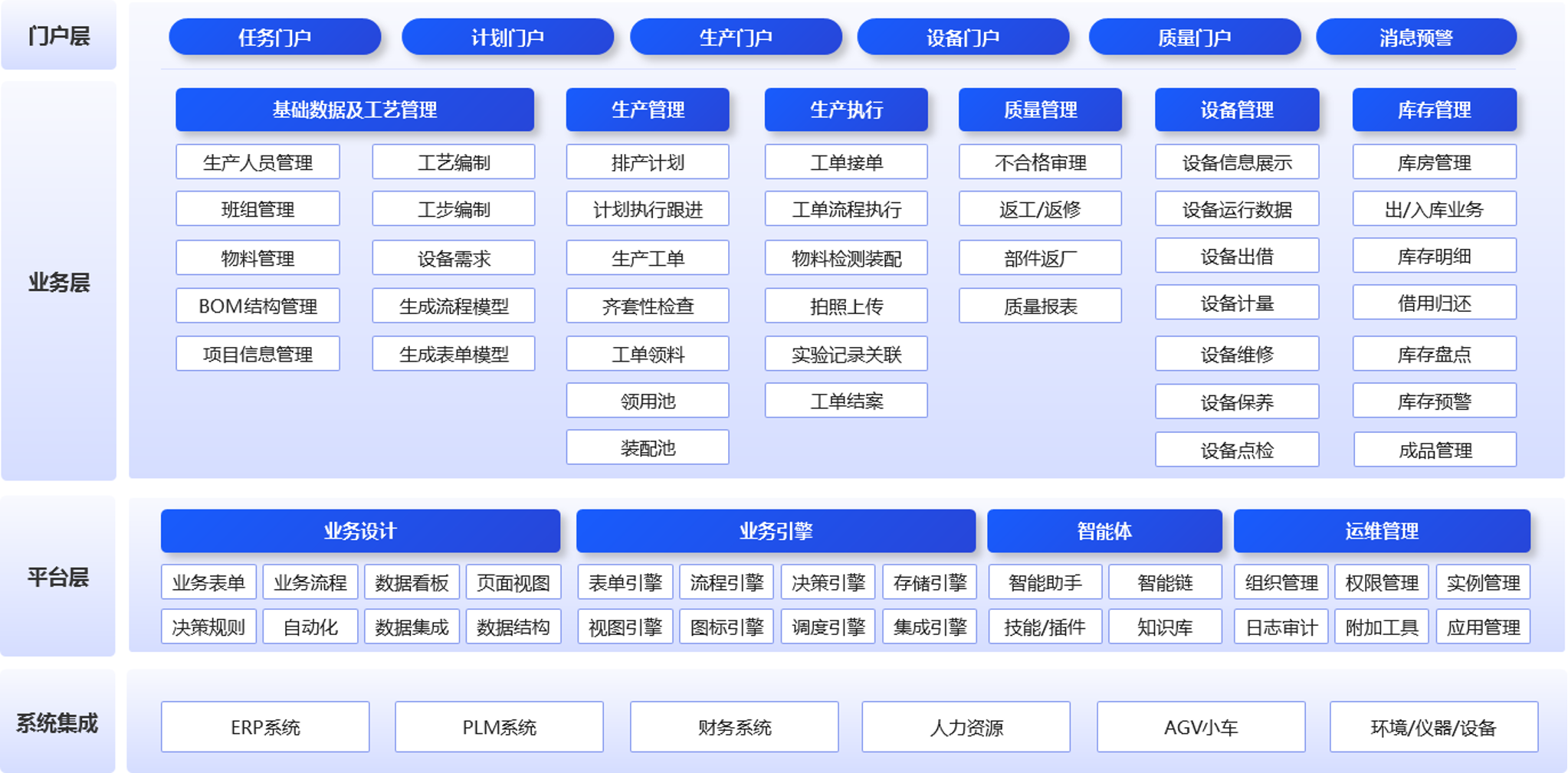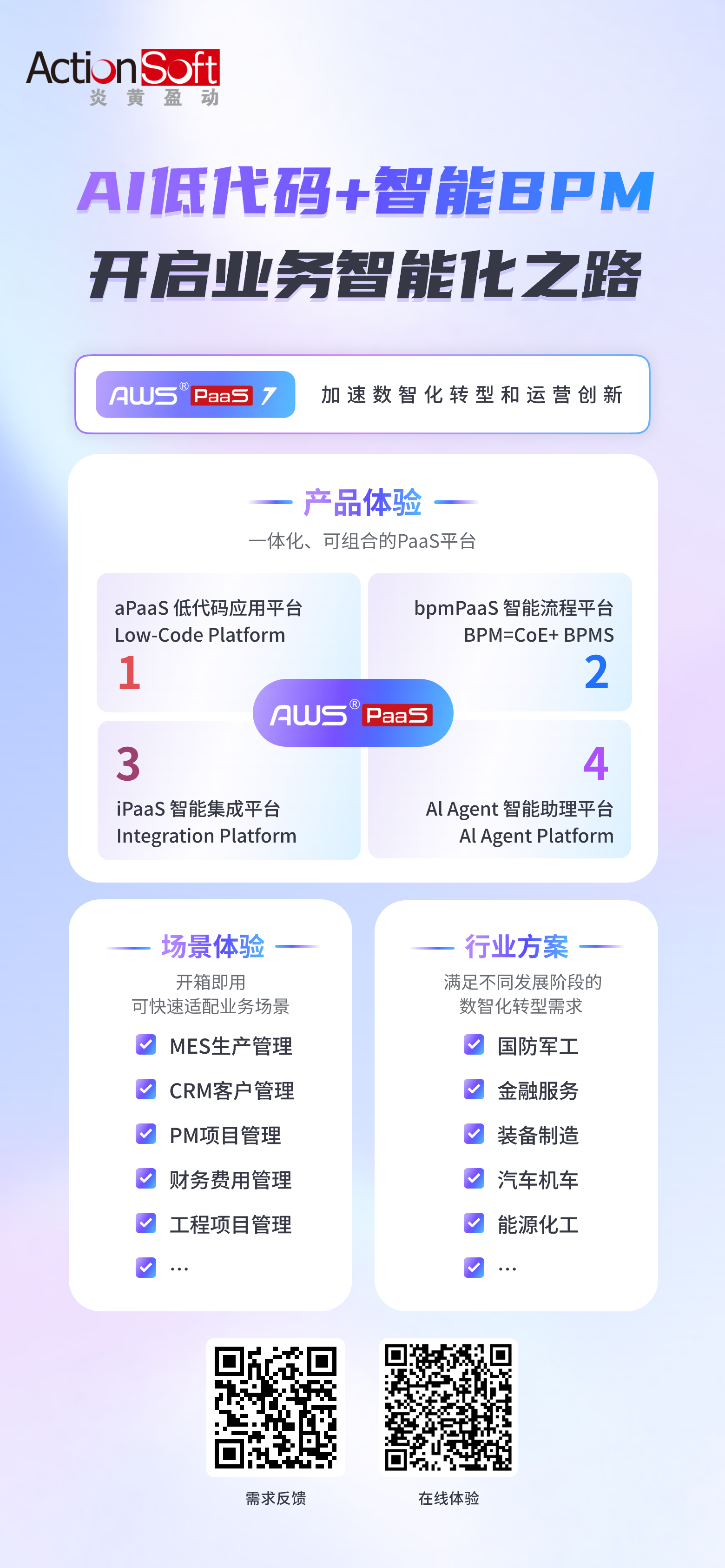 多品种小批量生产企业提升产能的核心在于实现“效率”与“柔性”的动态平衡。AWS PaaS柔性MES通过低/无代码大幅缩短实施周期,以智能流程引擎加速生产响应,通过数据集成消除信息孤岛,并借助AI应用让企业生产力跃升,为管理者提供精准的决策支持。其“AI低代码+智能BPM”双引擎架构,既支持快速适应订单变化与工艺调整,又能确保规模化生产下的效率提升,成为企业应对市场波动、提升竞争力的关键加速器。